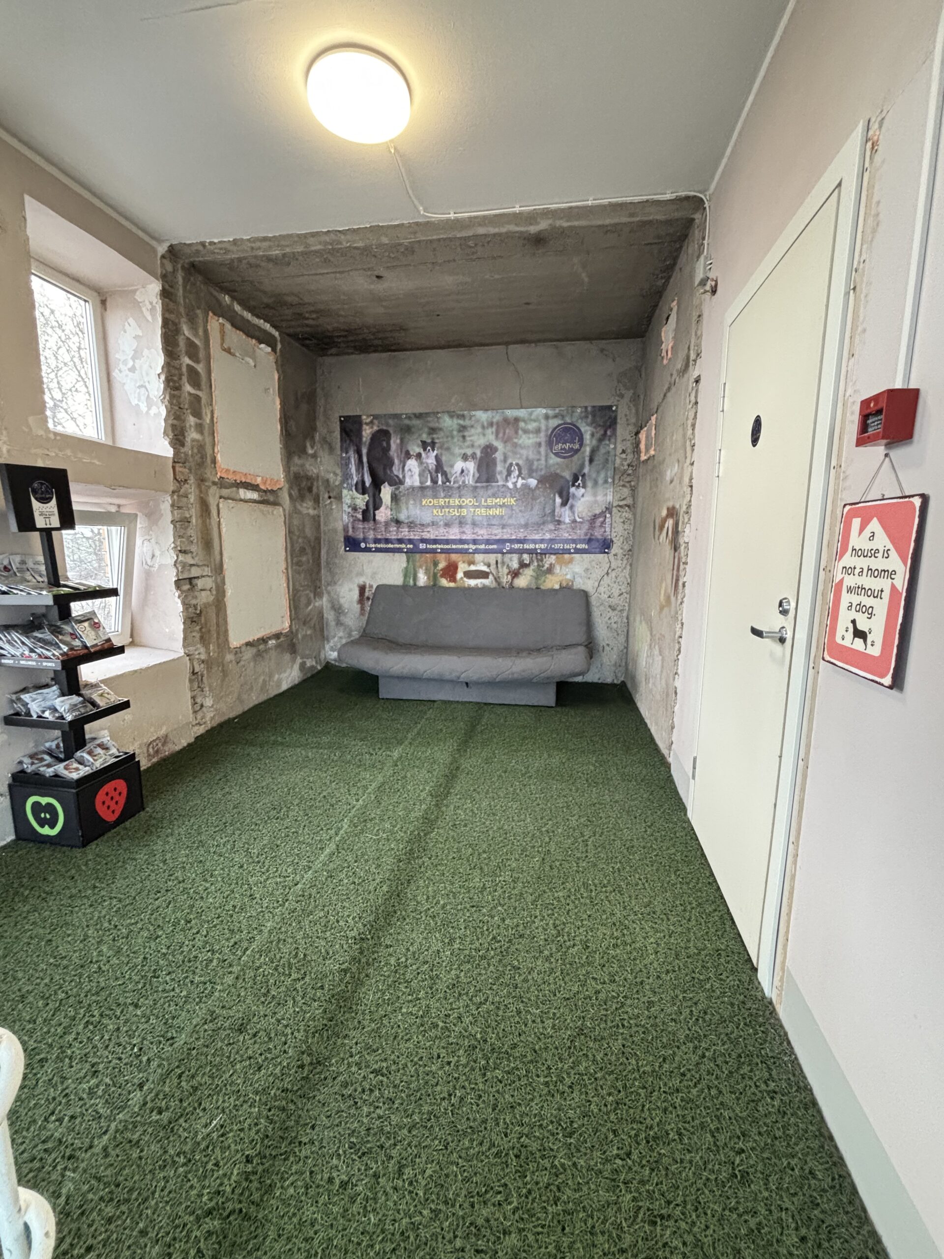 Ruumid asuvad II korrusel, kuhu viib lai trepp. Olemas on ootealad. Ruumides olemas WC ja soe vesi. Kõigides ruumides peeglid. Olemas võimlemisvarustus, 2 agility hüpet; 1m tunnel, mänguasjad, pesad, nuuskimismatid ning muud varustust. ///Müügiseinal leiab trakse, jalutusrihmasi, nutikas lemmiku puslesi, naturaal karvaga mänguasju, jm.